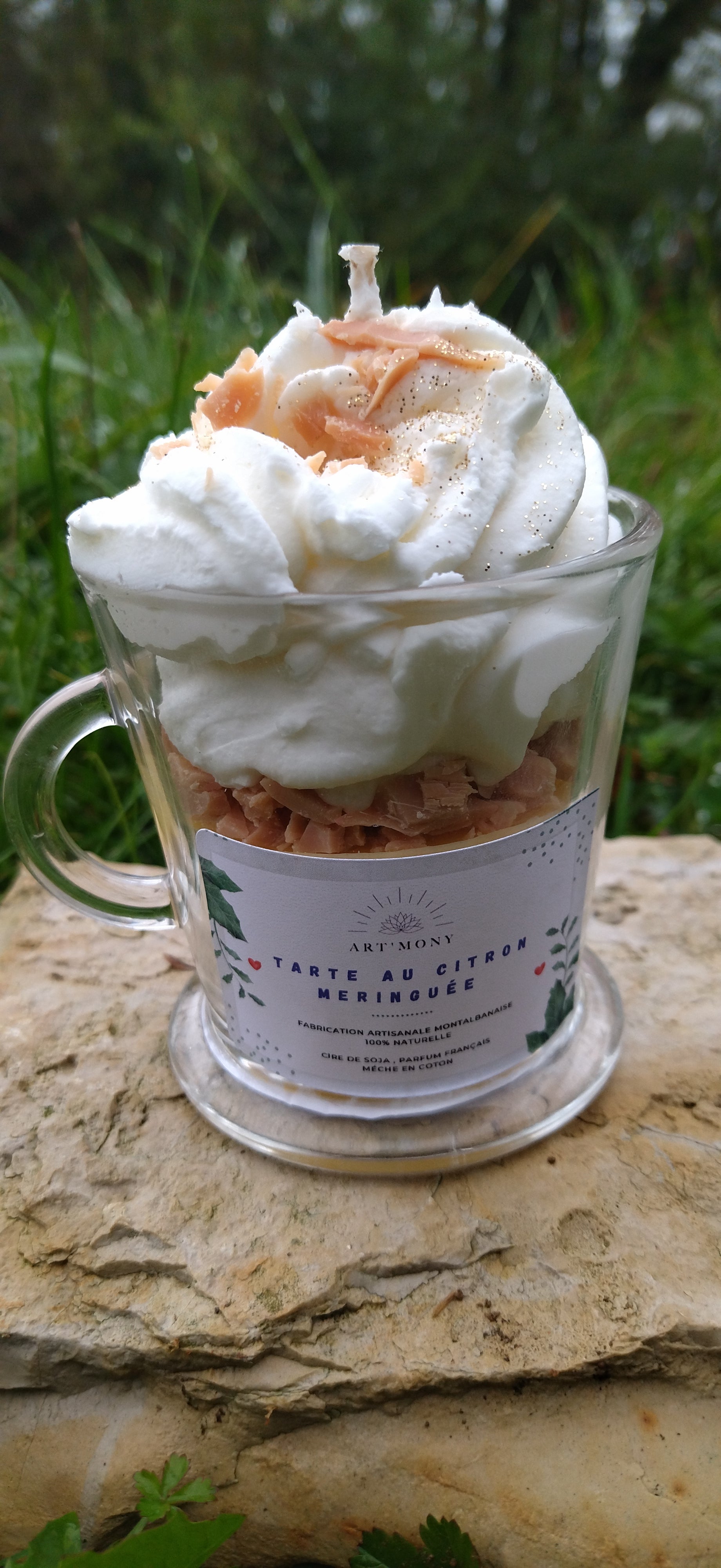 Plongez dans la fraîcheur et la douceur de notre bougie gourmande Tarte au citron meringuée, fabriquée artisanalement dans notre atelier du Tarn et Garonne. Conçue avec de la cire de soja 100% naturelle et une mèche en coton, elle vous offre une combustion propre et respectueuse de l'environnement.