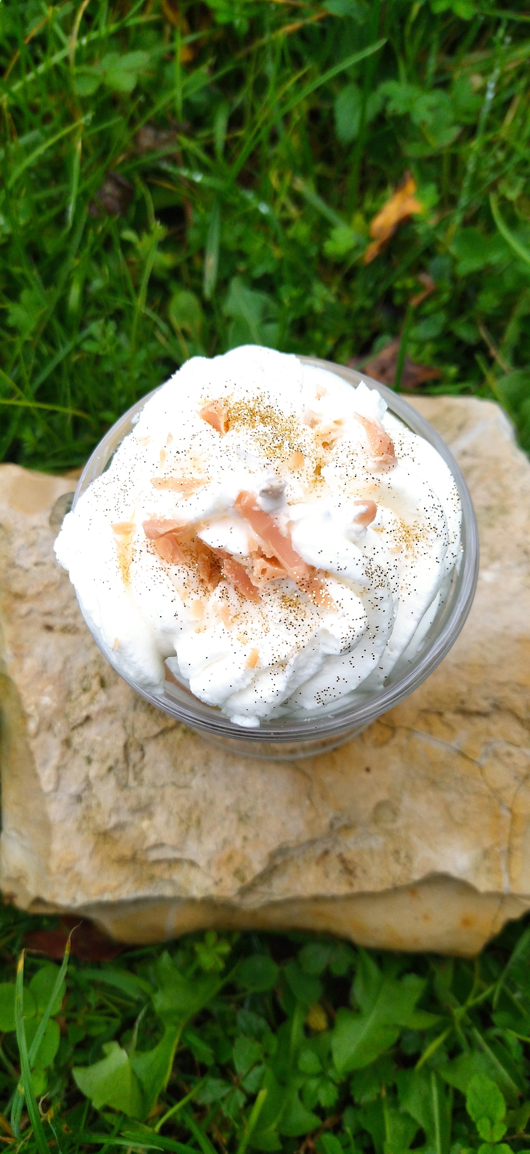 Composition: Paillettes biodégradables , cire de soja (EU), mèche en coton et parfums français.