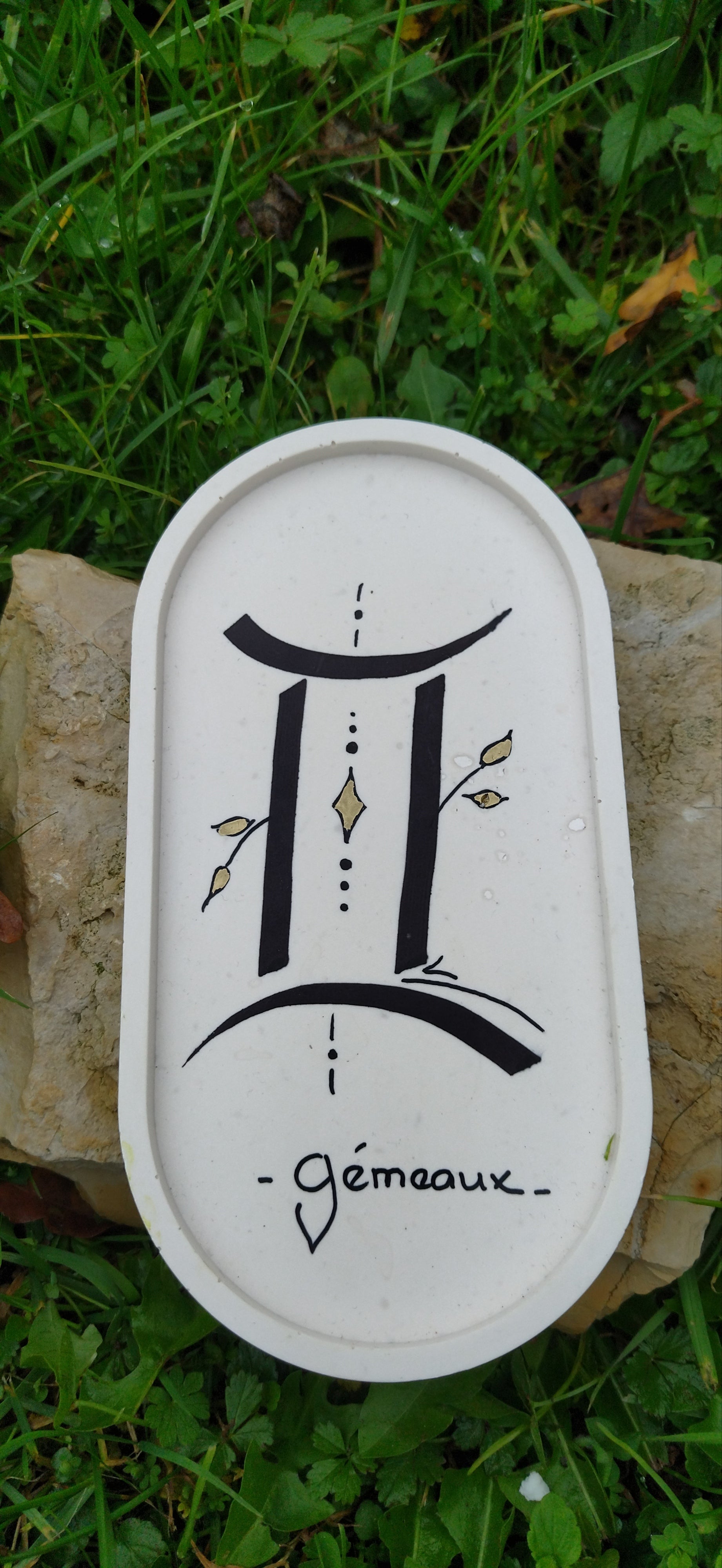 Ajoutez une touche d'élégance à votre intérieur avec notre plateau artisanal en Jesmonite .Un matériau naturel à base de Gypse et de résine à base d'eau .Chaque pièce est minutieusement réalisée à la main , avec un dessin unique représentant les signes astrologiques , faisant de chaque plateau une pièce unique ! Une œuvre d'art à part entière.